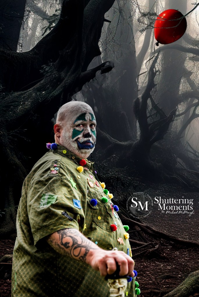 The scenes we shot combined a mix of haunting, dramatic, and surreal visuals. From a clown wandering through shadowy woods to eerie amusement park settings, we built a narrative that was both visually stunning and deeply unsettling. We used four distinct costumes, each lending its own layer of storytelling to the photos. The images you see here reflect just one aspect of the shoot, with more chilling scenes still to come.