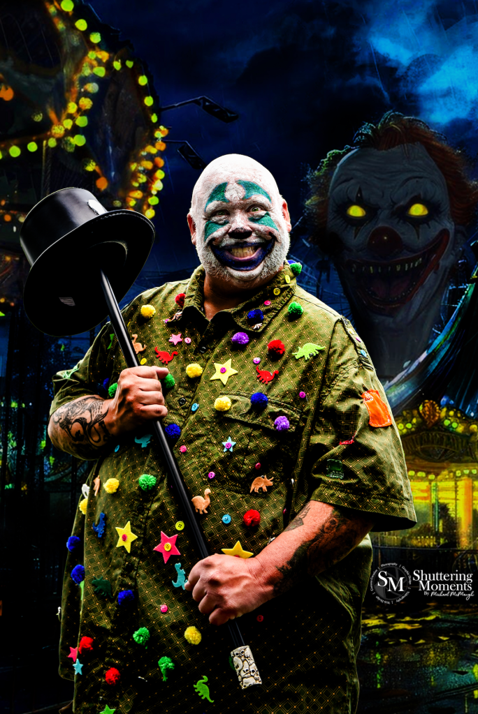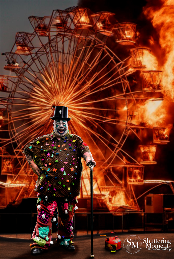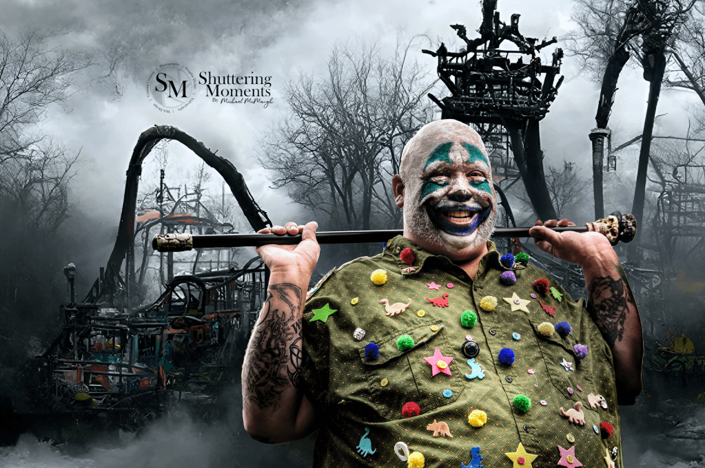 In this blog post, I’m excited to share the clown portion of our two-day shoot, offering a sneak peek into the eerie world we built. These images, which feature an unsettling combination of clowns and decaying amusement park settings, are only one part of this haunting project, with more scenes and costumes still to come!