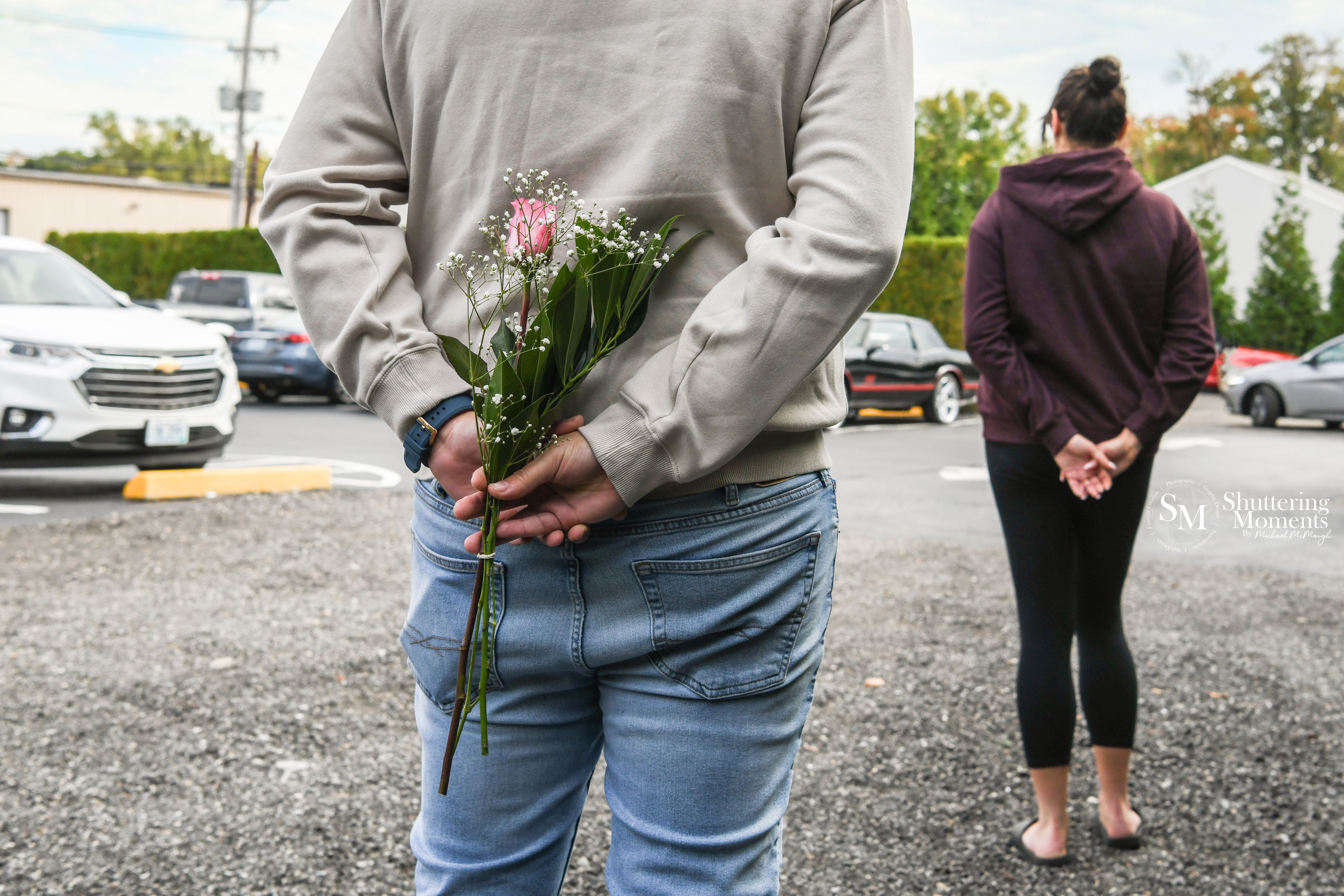 One of the standout images from this shoot features the couple sharing a sweet kiss in the background, with one of their phones in the foreground, clearly in focus. This shot was meticulously planned to highlight both the candid nature of their love and the significance of the moment. I also brought along beautiful flowers to enhance the romantic feel of the scene, demonstrating how thoughtful details can elevate a single image into a cherished memory.
