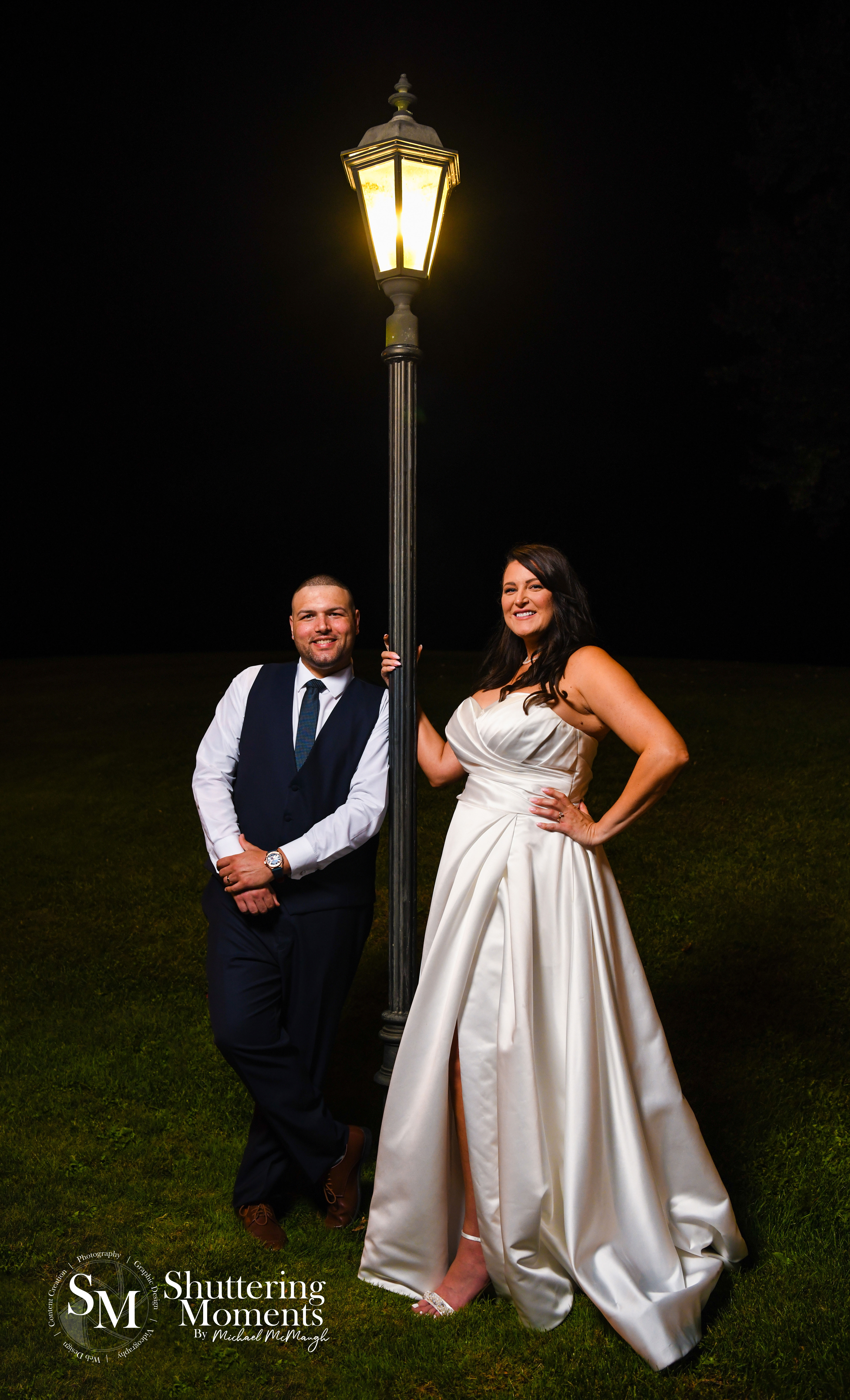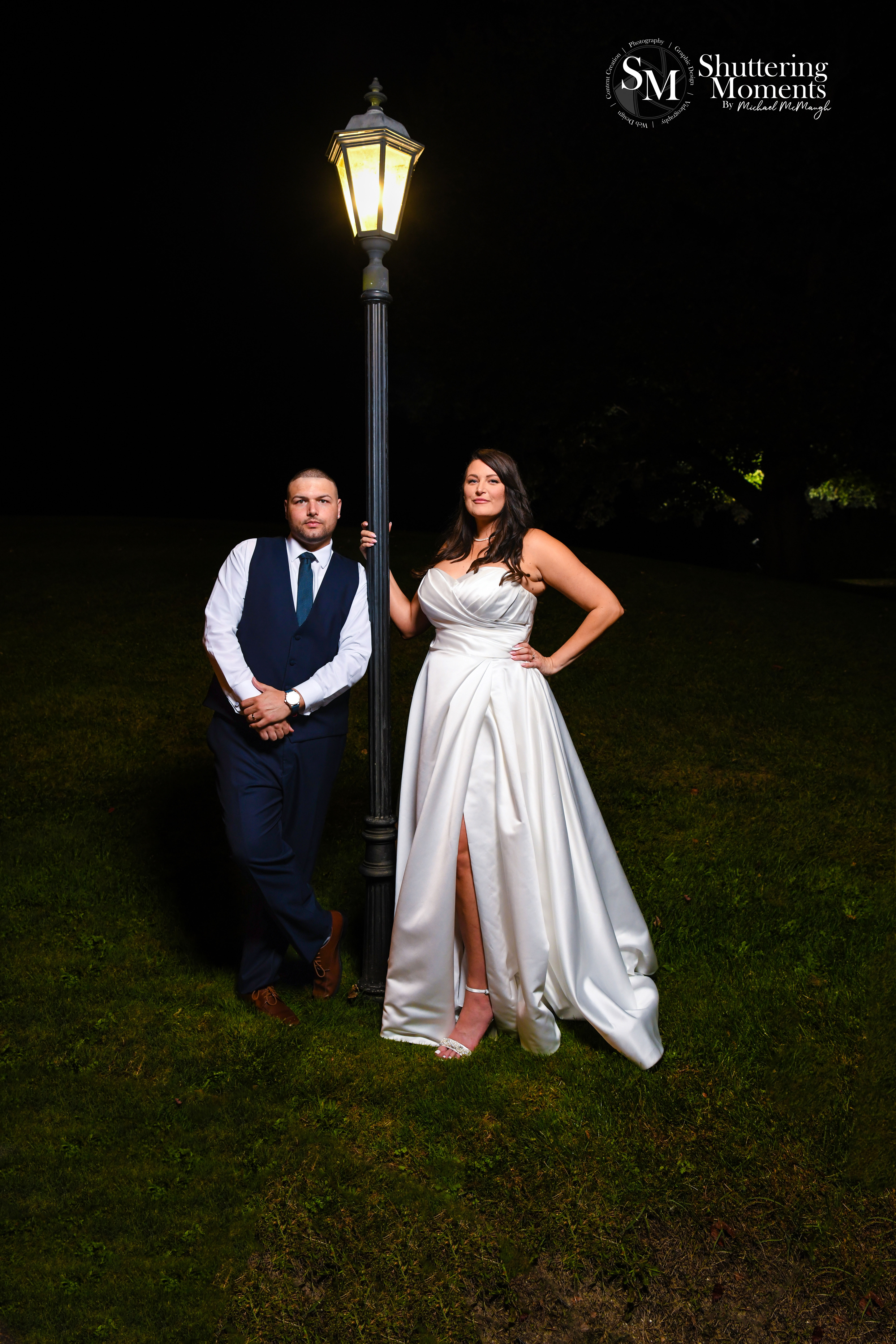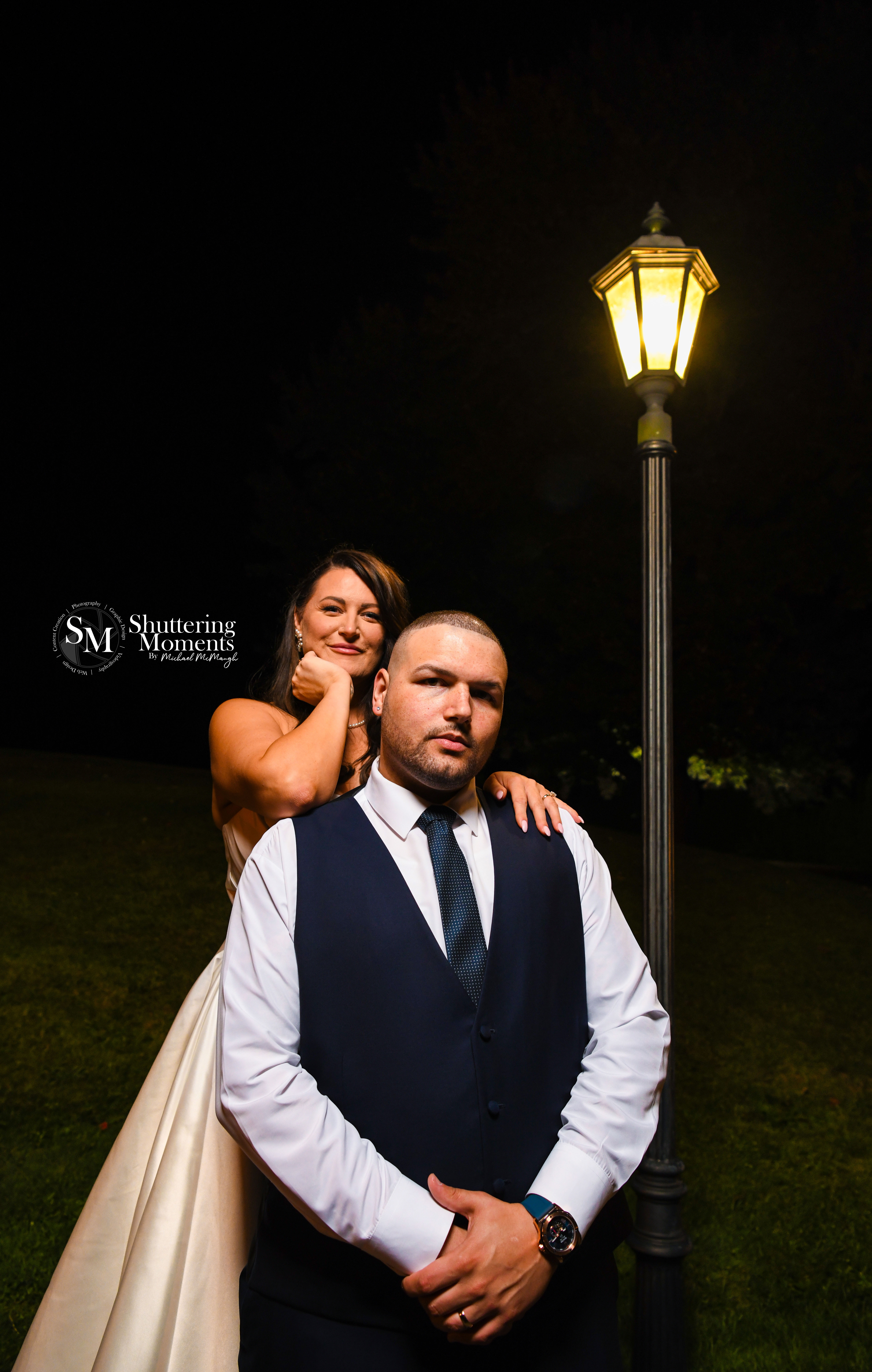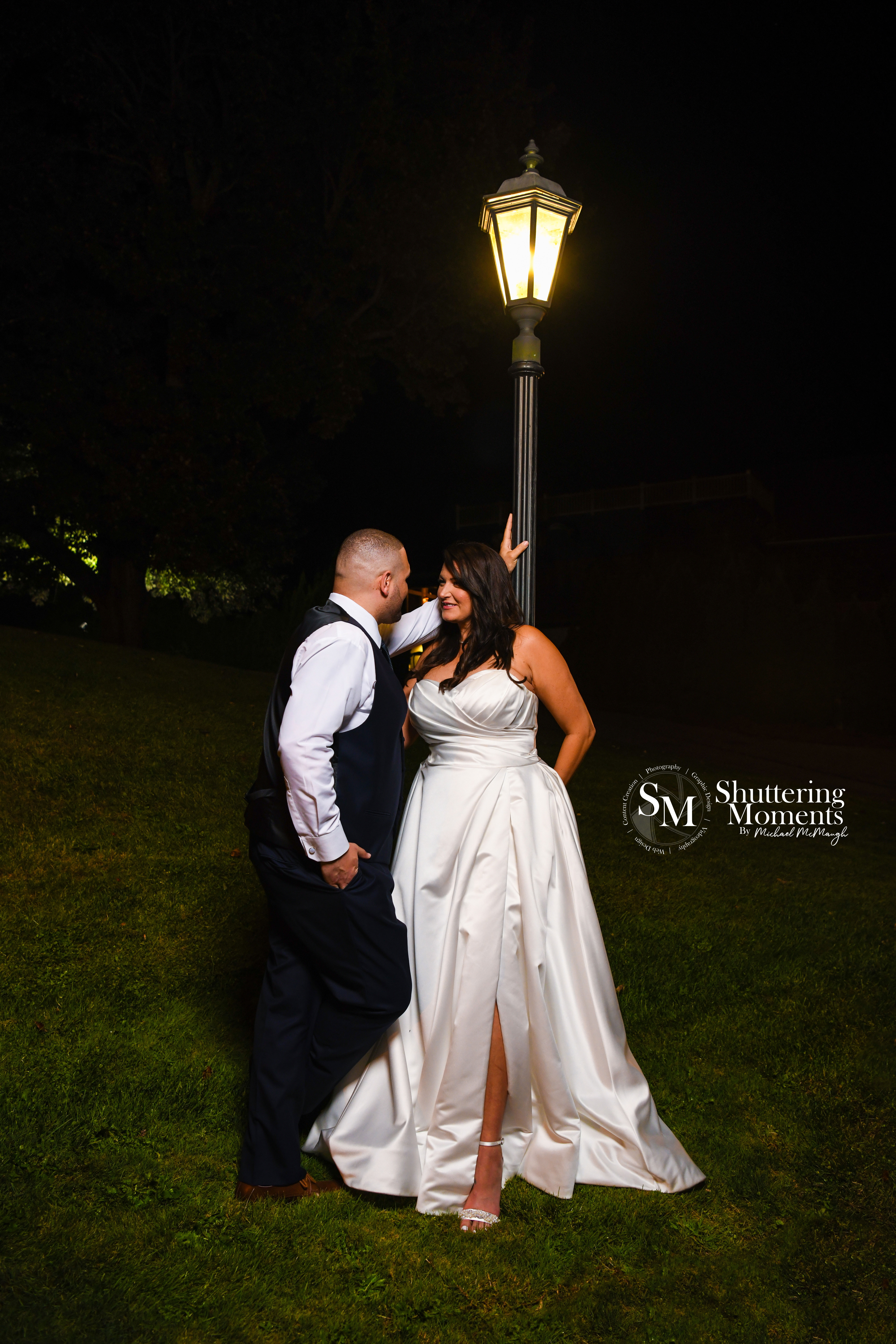 Later, as the sun continued to set, we ventured to a charming light post just outside the venue. The bride and groom’s expressions—ranging from serious, intimate glances to wide, joyful smiles—added a timeless quality to the images. Each shot felt like a work of art, reflecting their unique connection.